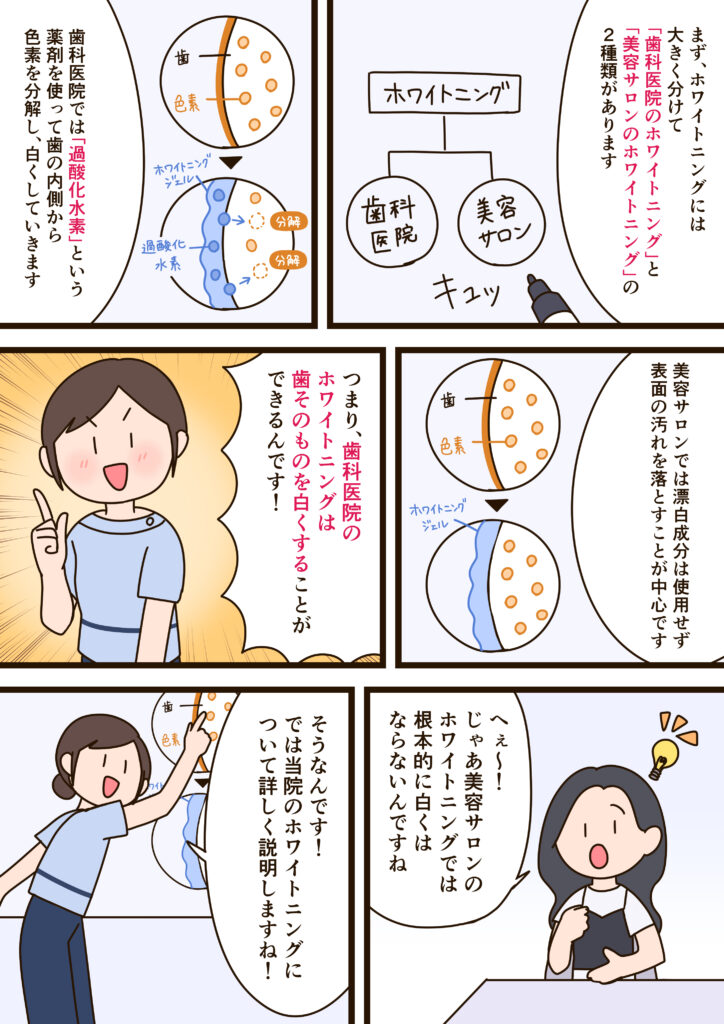 エステサロンでのホワイトニングや市販されている製品でのホワイトニングと比べて効果が高く、白くなるスピードが早いのが特徴です。